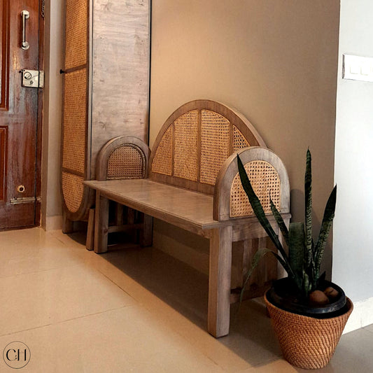 Elenore - Chic Solid Wood and Rattan Entryway Bench