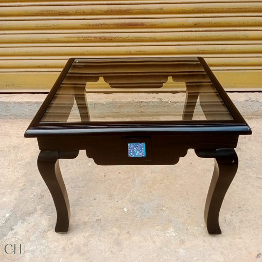 Viola - Ornate Solid Wood Side Table with Toughened Glass Top